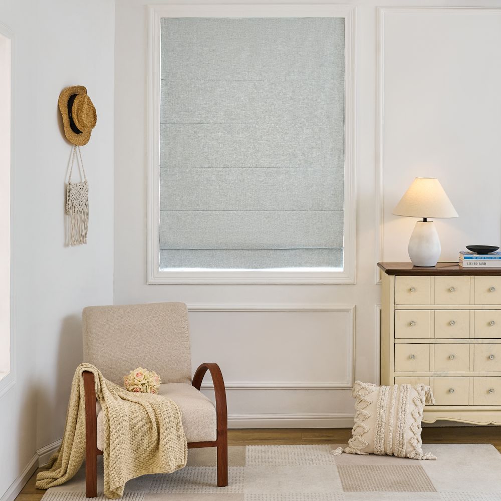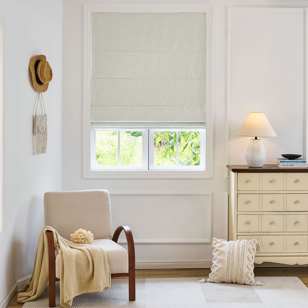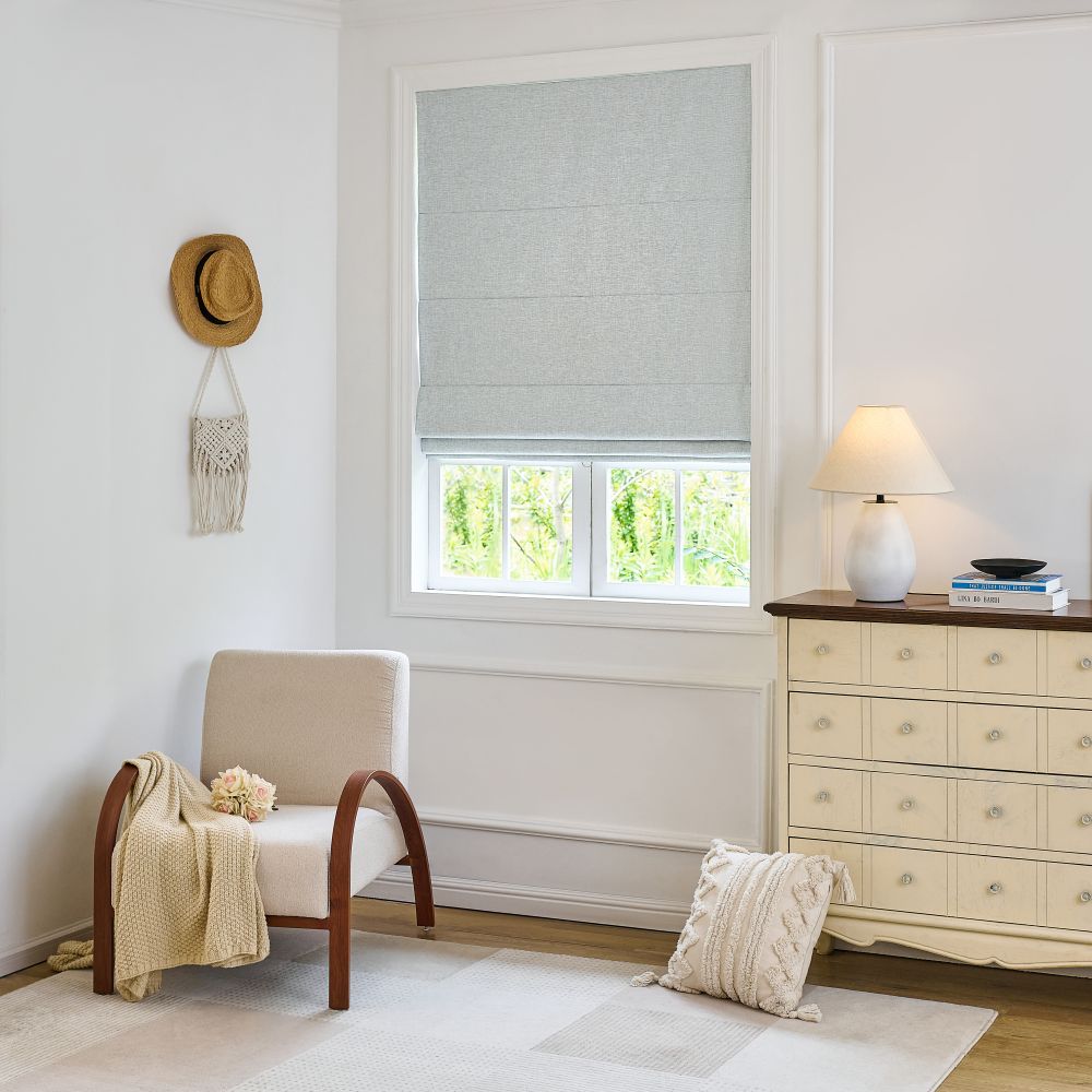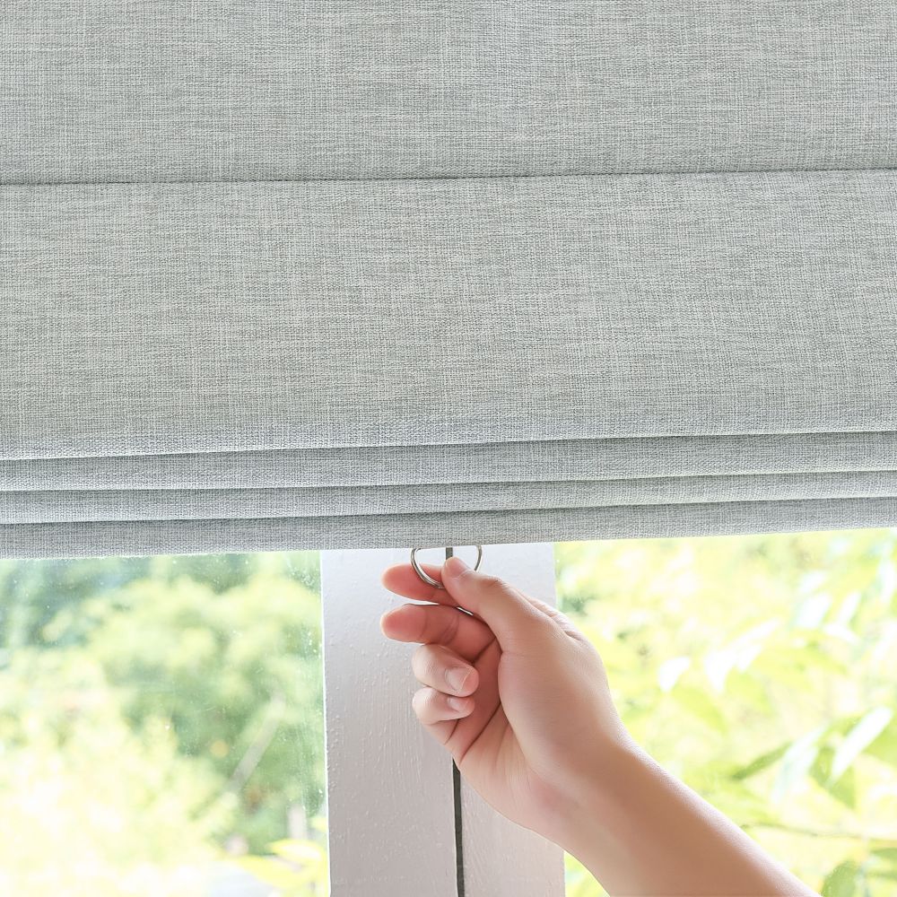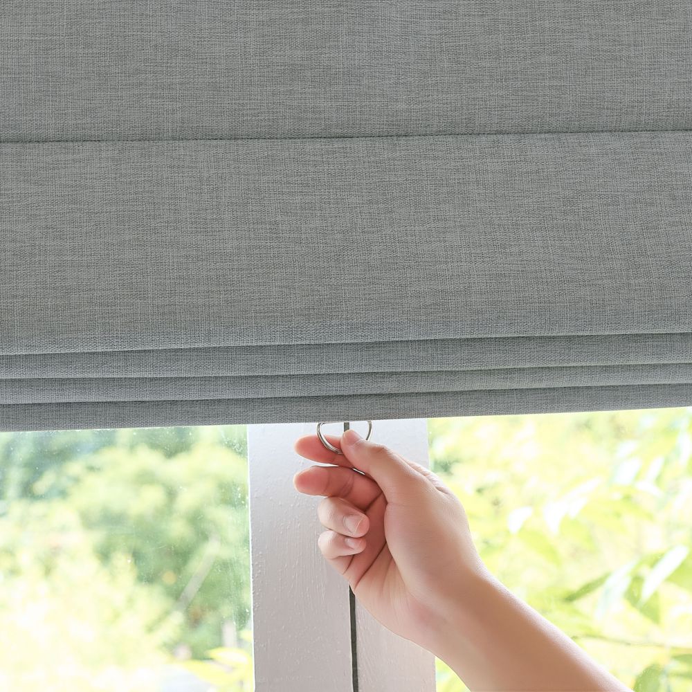 With quality fabric with rich linen texture, the Aiden custom Roman shades provide a classic and sleek look, complementing various styles.
