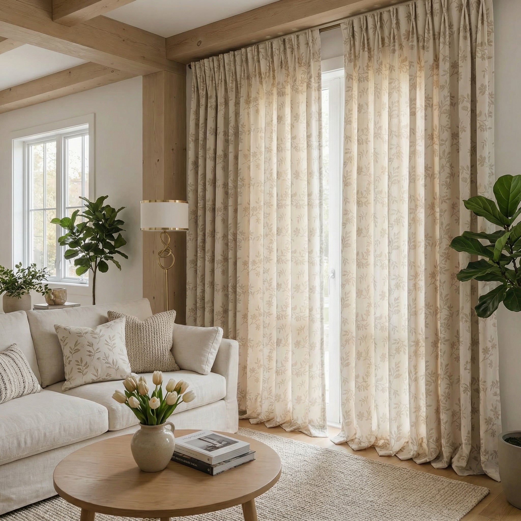 Alibi Neutral Style Subtle Leaf Patterned Curtains