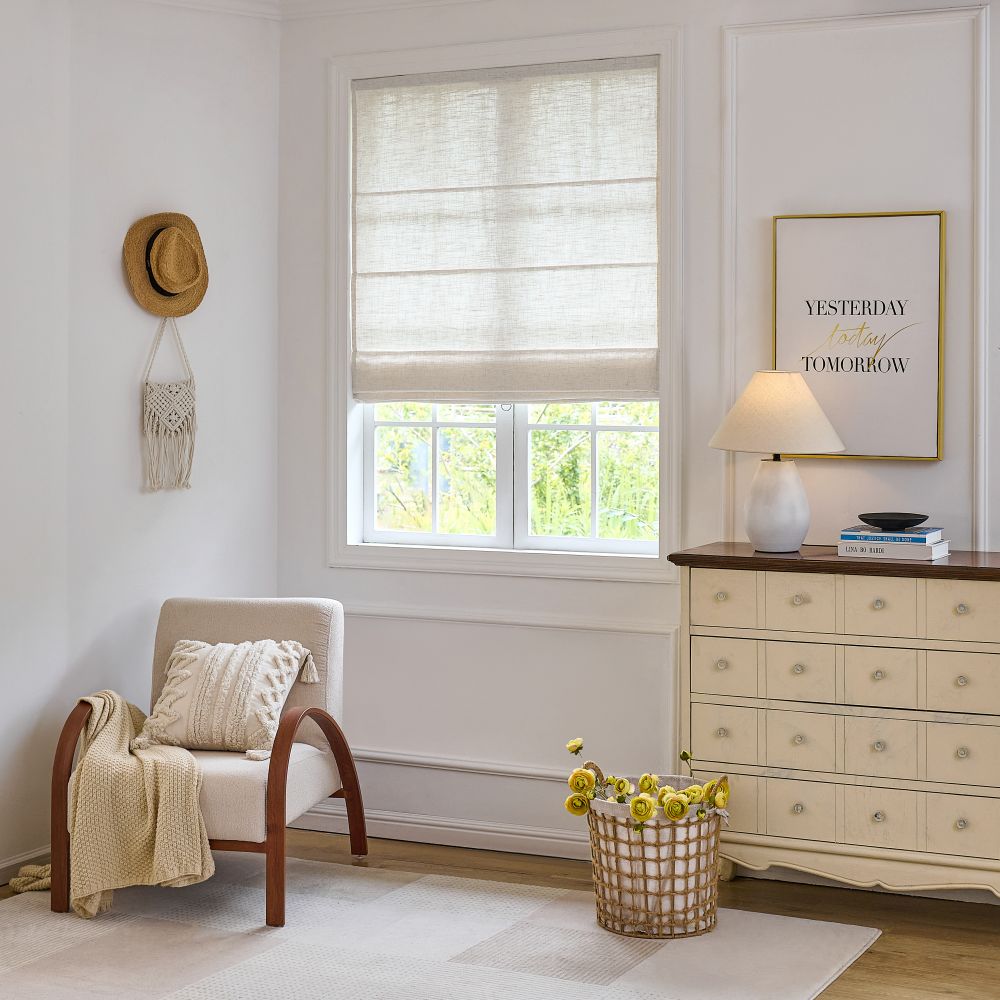 Light Linen Roman Shades
