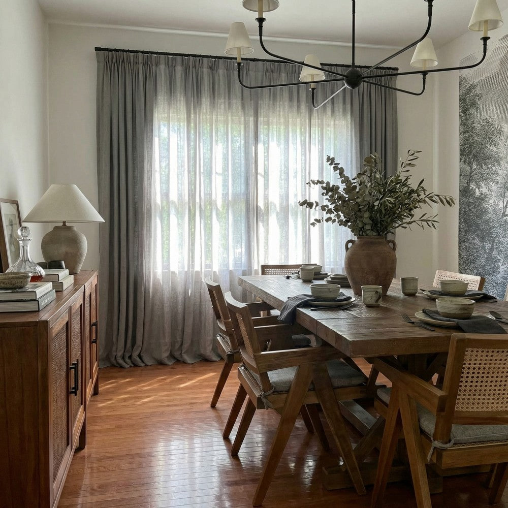 Natural linen can always create a natural & cozy ambiance. If you’re going for a cozy, rustic look, Cecilia could be a choice.