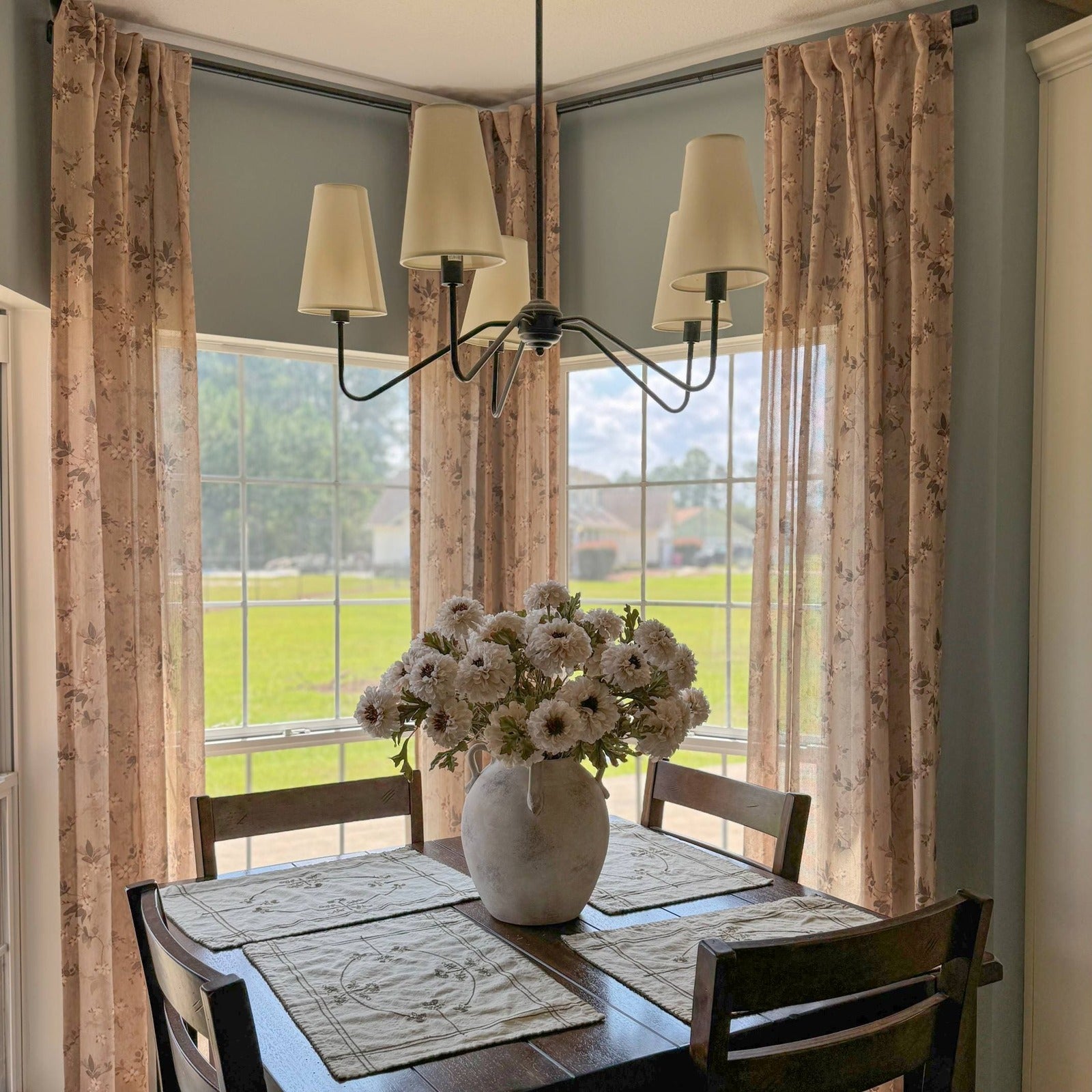 Cleo Vintage Style Floral Linen Mesh Sheer Curtains