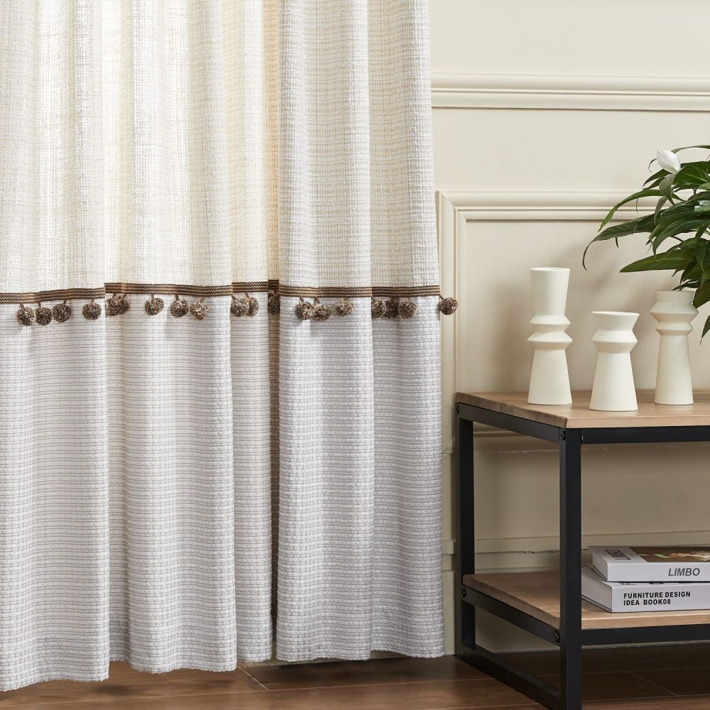 The pom pom trim on the middle of the splicing curtains add a unique charm and elegance to this curtains.