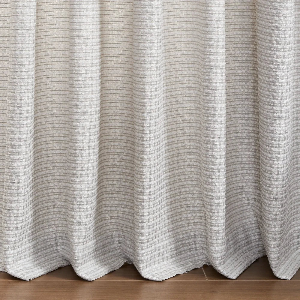 Fresh light color fabric splicing with plaid grey fabric creates a unique while harmony ambiance, and adds a unique charm to this curtains. The pom pom trim embellishes the splicing curtains and is eye-catching.