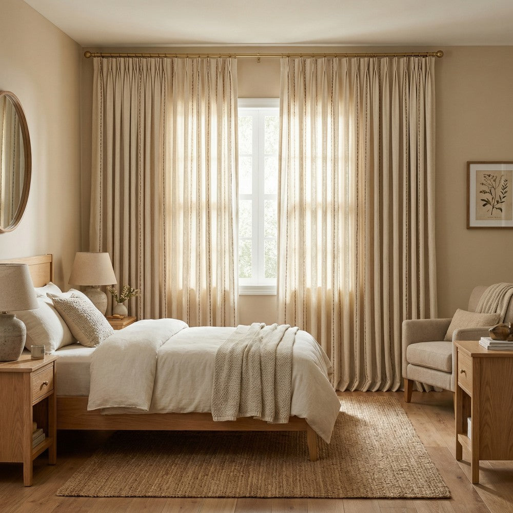 The brown hues of vertical lines combined with light linen cotton fabric, the Erika curtains are ideal for creating a rustic style for living room.