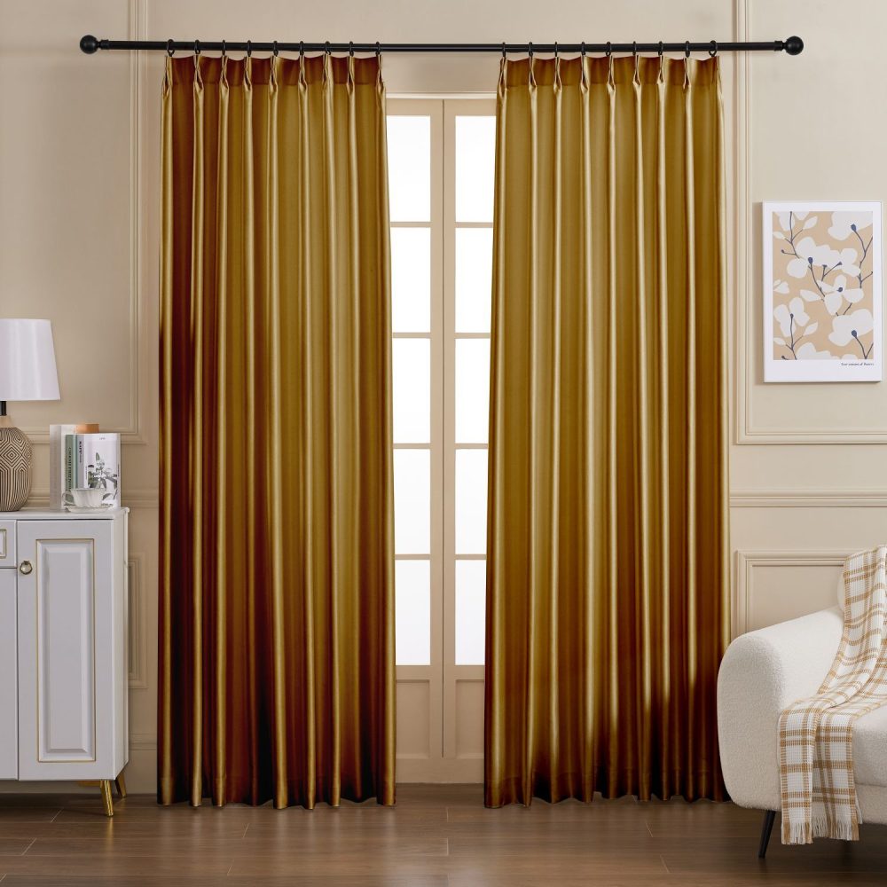 1. For solid curtains like linen curtains, the maximum finished curtain width without a seam is 104 inches(for pinch pleated curtains, it’s 52 inches) for curtain lengths above 104 inches. For curtain lengths below 104 inches, there is no seam and no limits on the width.