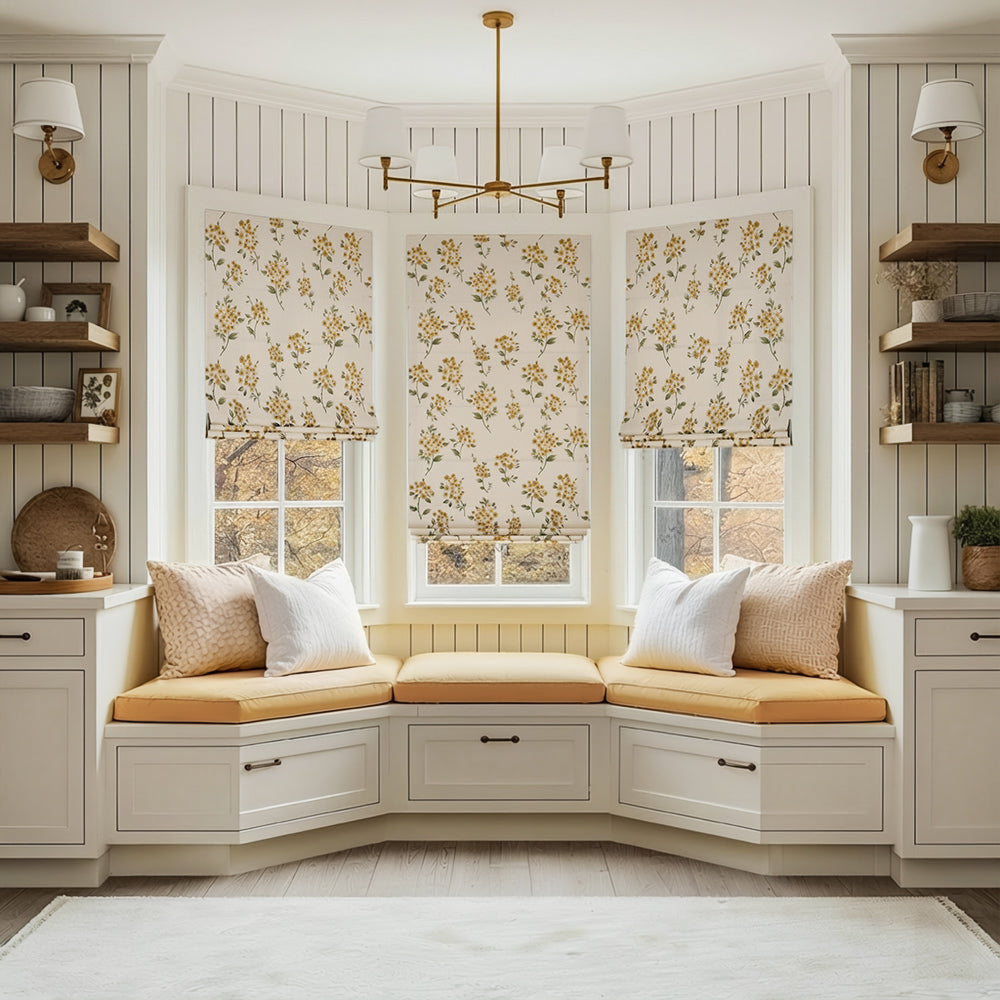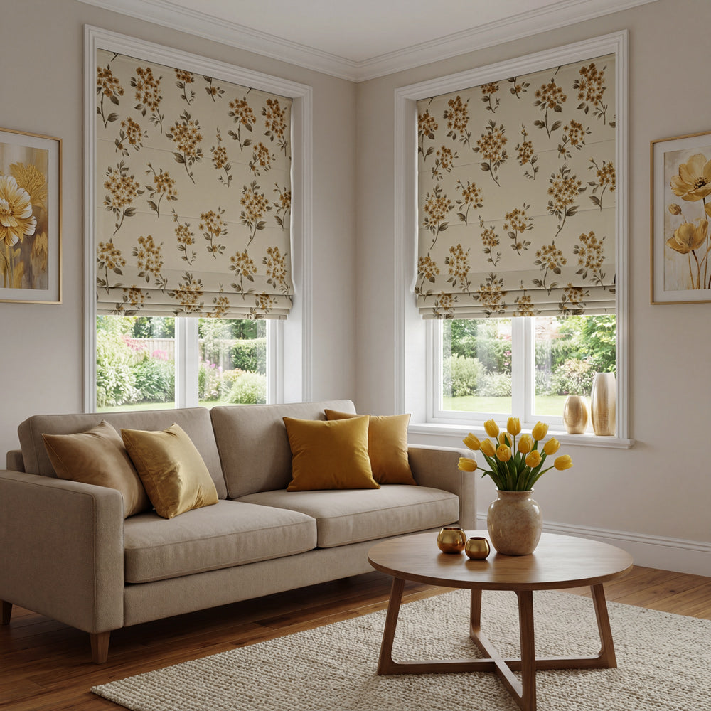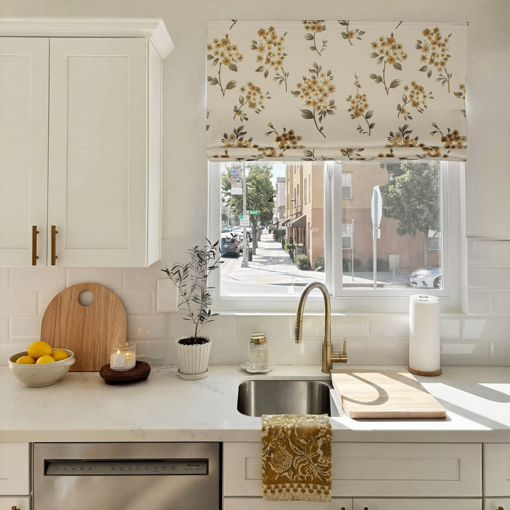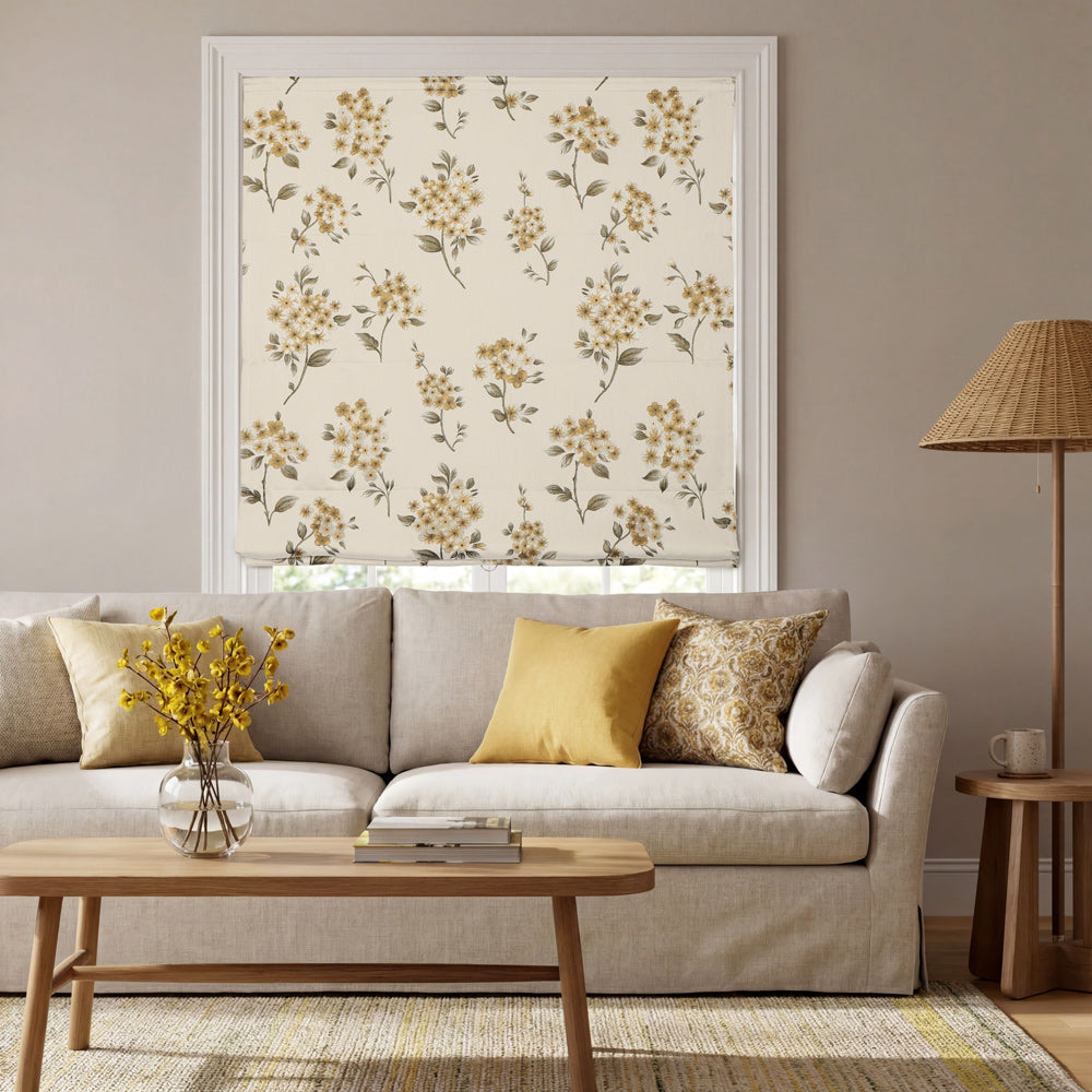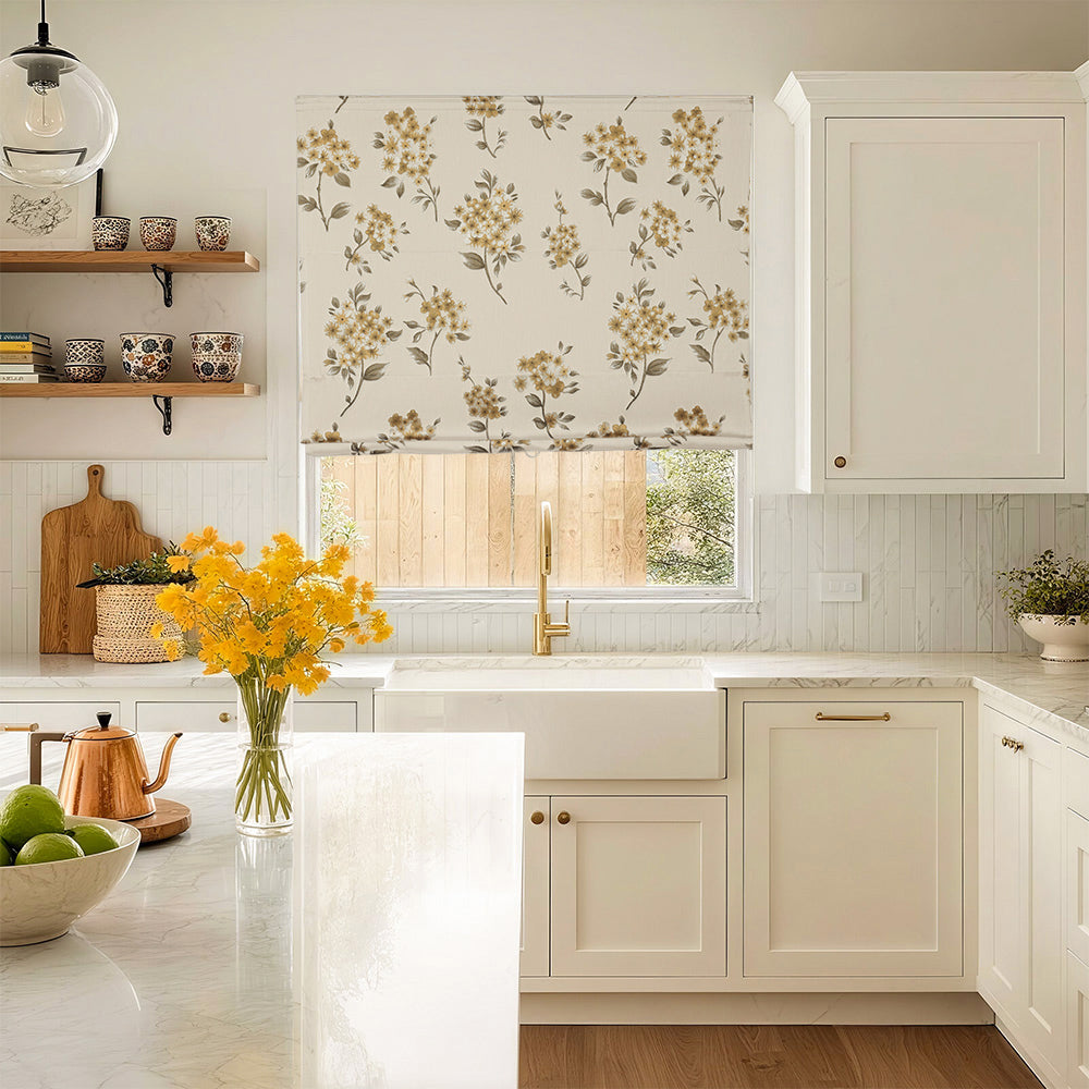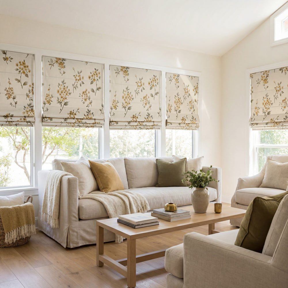 Beige Botanical Custom Roman Shades