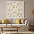 Medium-sized clusters of soft yellow cherry blossoms are scattered across a creamy ivory ground. The warm, sun-kissed palette creates a gentle, uplifting focal point with a hand-painted feel.