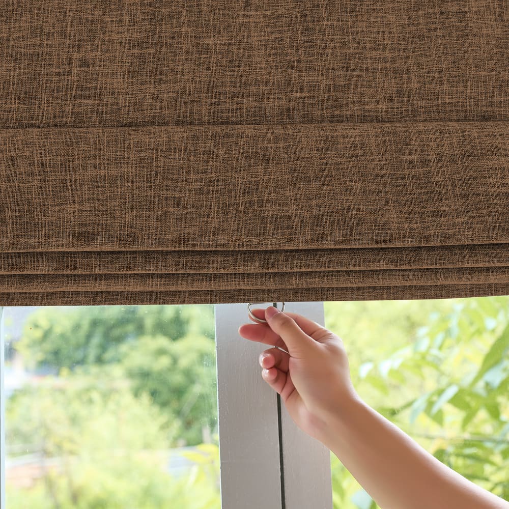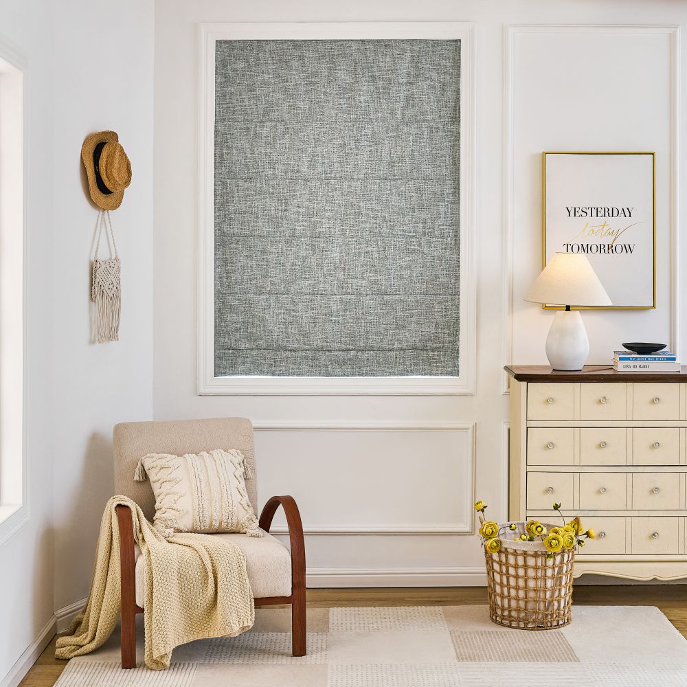 Crafted from fabric blackout layer built, our Gabriel Roman shades block out 100% of lights and create total darkness for bedrooms and media rooms.