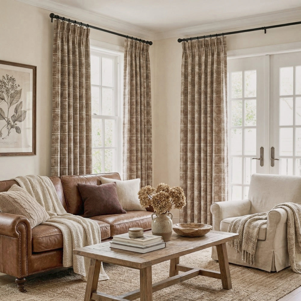 Hadley Modern Vintage Brown Plaid Curtains