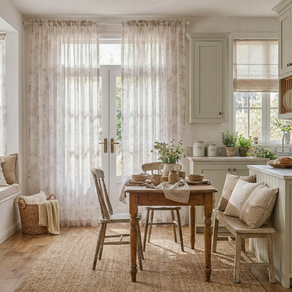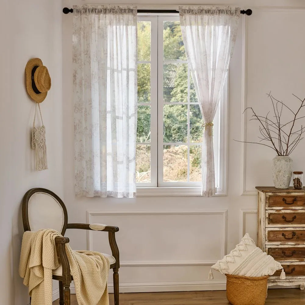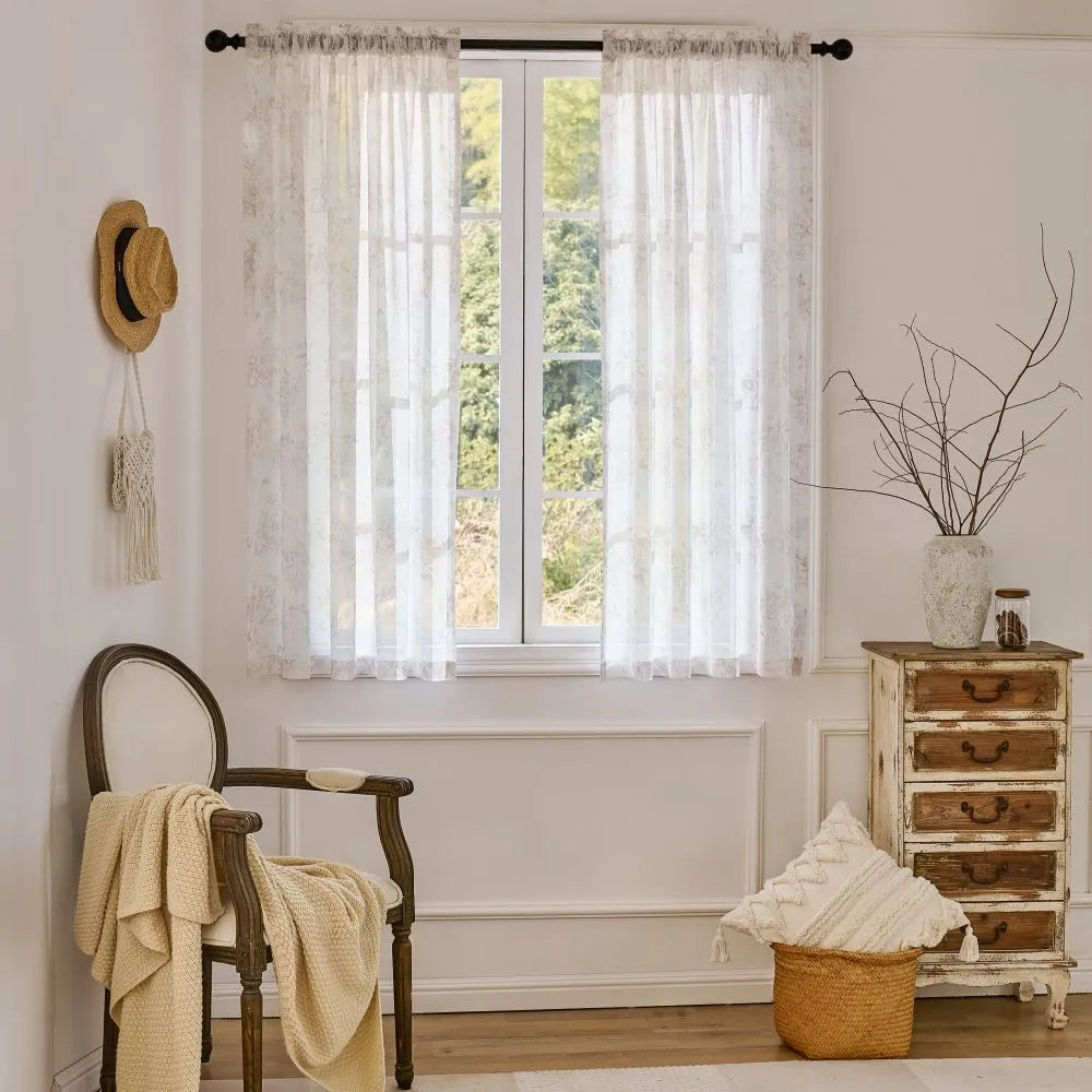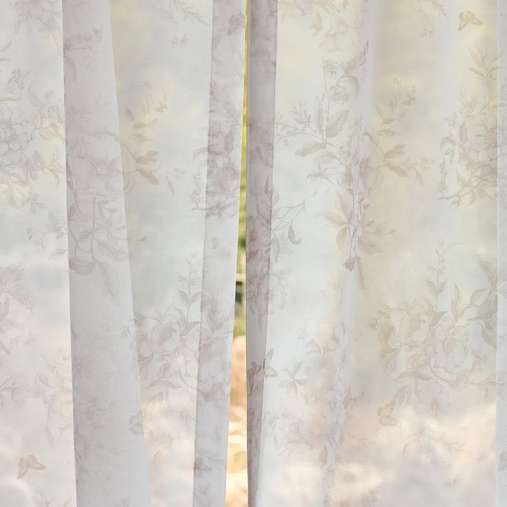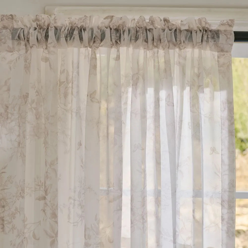 Ivanna Farmhouse Floral Toile Print Sheer Curtains
