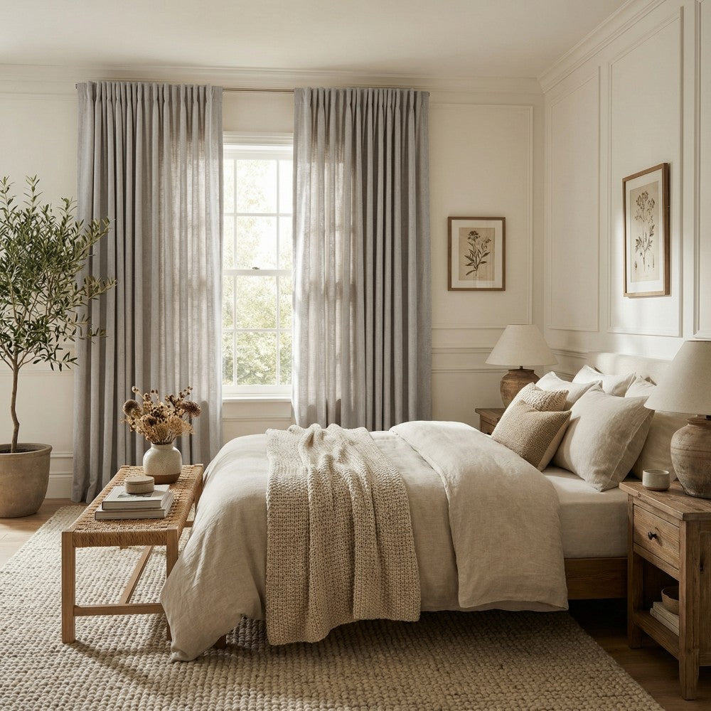 Elevate the ambiance of your room with our faux linen curtains, featuring a timeless color palette inspired by traditional linen tones.