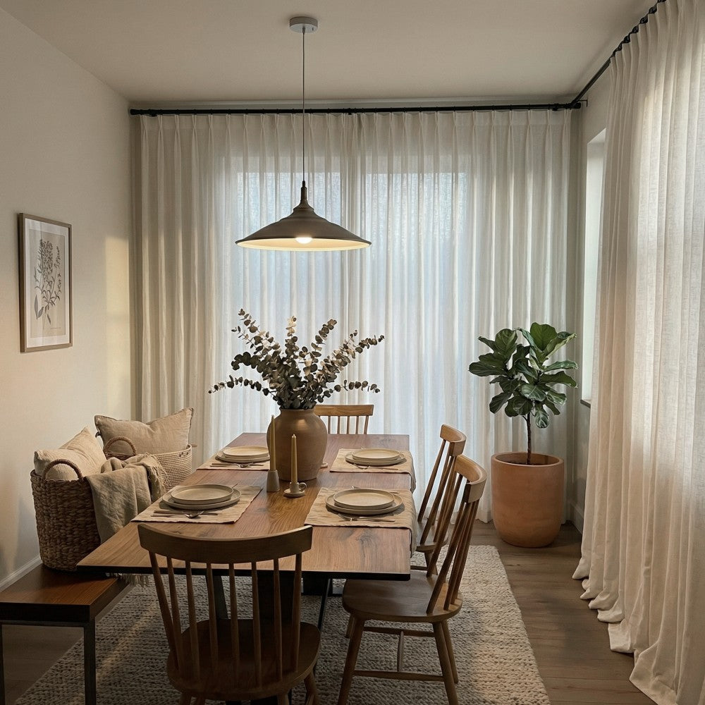 Leah sheer curtains have light weigh and natural drape. Pairing with simple color and solid texture, it drapes gracefully and adds a hint of elegance to your space.