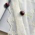 With the embroidery process, daisy flowers bloom over the white fabric, airy and vivid.
