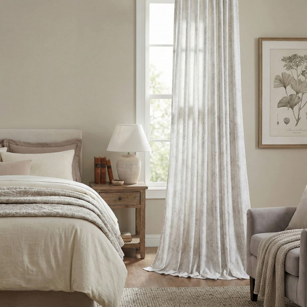 Mazon Damask Foil Printed Linen Sheer Curtains