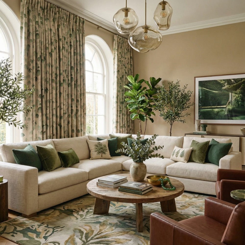 The pine pattern in sage green creates a perfect nature-inspired ambiance and artistic hues.