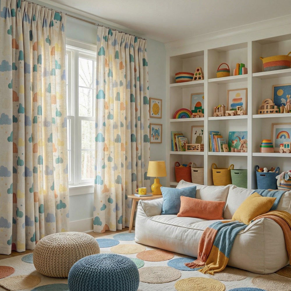 Poppy Colorful Printed Clouds Linen Curtains