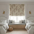 With jacquard woven, these Priya custom Roman shades feature a sophisticated tulip floral pattern and also a 60-70% light blocking.