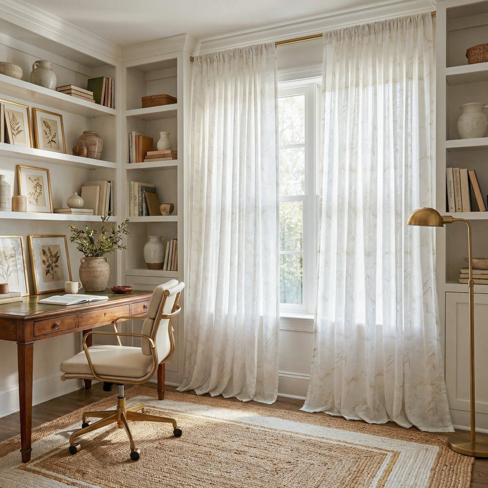 Riley Gold Marble Pattern Phantom Sheer Curtains