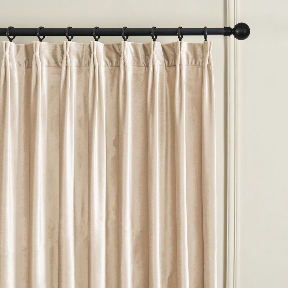 For double/triple pinch pleat curtains, the recommended width is 1x of the curtain rod/track. And measure the length from the ring where the curtain hooks/clips are attached. (the “Width of Curtain” refers to the width after pleats-made for plteated curtains)